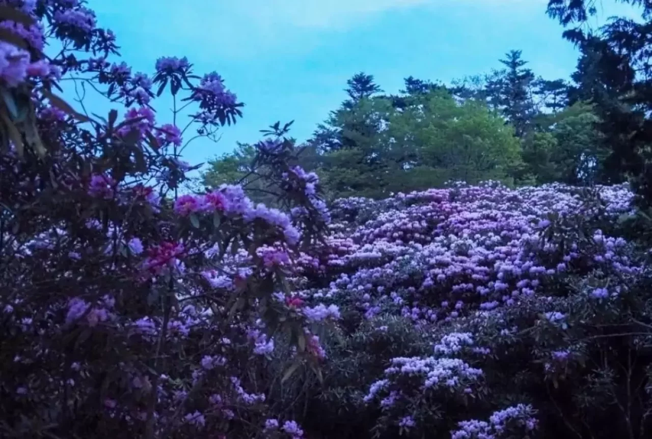 玉置山山頂付近ではシャクナゲがお出迎え。
