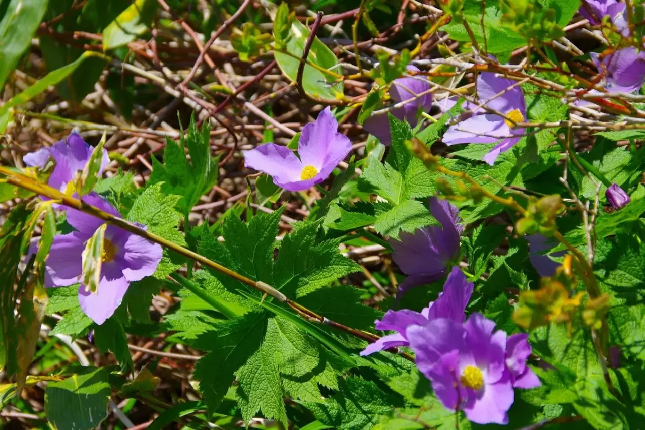 季節ごとに見られる景色が変わり、四季折々の姿を見ることができます。コムラサキの実やつつじも見られ、秋の紅葉に染まった景色もおすすめです。野鳥では、時折ヤマガラやエナガなどが姿を現してくれることもあり、鳥たちのさえずりに癒されながら山頂までの道を進んでいけます。