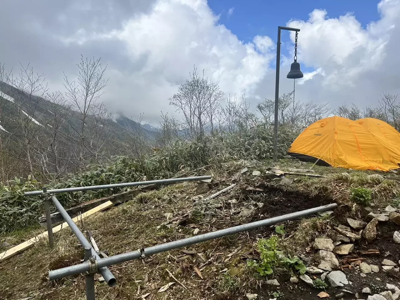 テント場は公式には快適に張れるのは8張りとありますが、15張りはいけるでしょう。