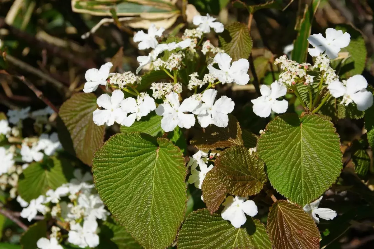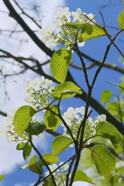美しい針葉樹林帯、傍らのヤマデマリを愛でつつ登ります。よく整備された登山道は難所・危険個所は皆無です。