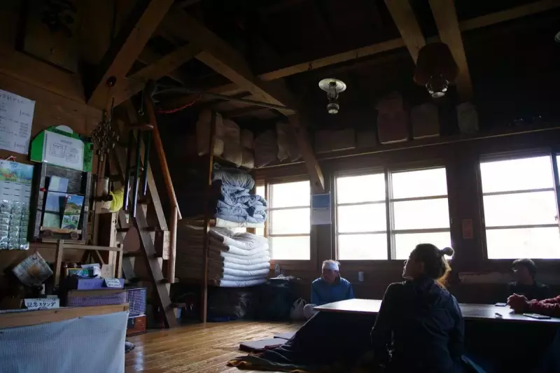 避難小屋は広く清潔、トイレはドア1枚隔てた場所で便利、臭いも無く快適です。