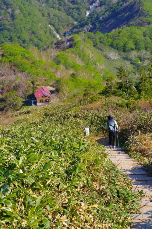 平元新道登山口から登ること1時間少々で平標山の家に到着。森林限界・残雪と新緑、設備の行き届いた営業小屋と避難小屋。駐車場から2時間半程でこのロケーションって他には無いように思います。