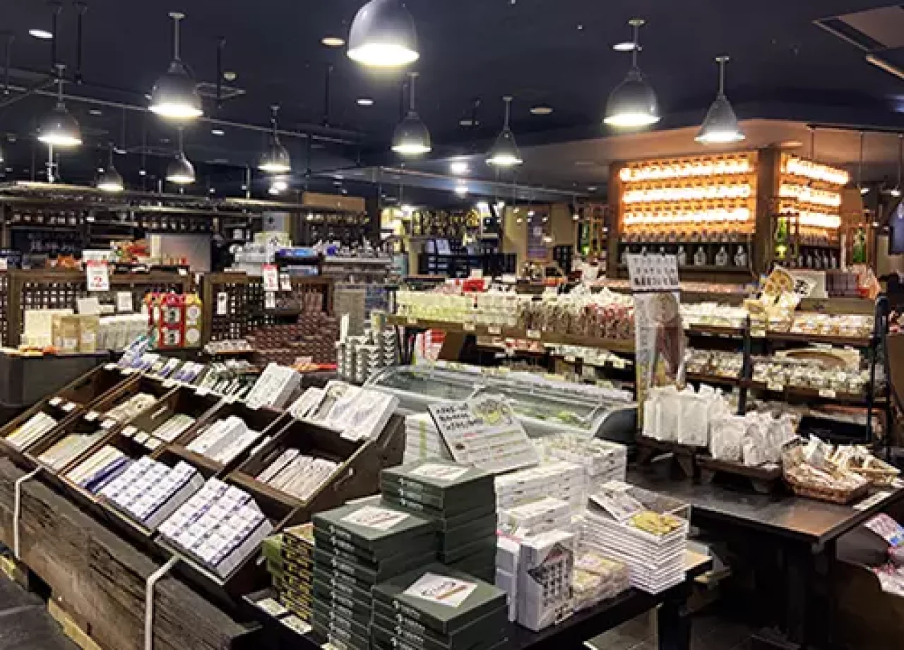 ぽんしゅ館では、お酒を使った甘いお菓子や、名産であるコシヒカリで作った米菓・伝統調味料・新潟産の干物などがそろうお土産館です。