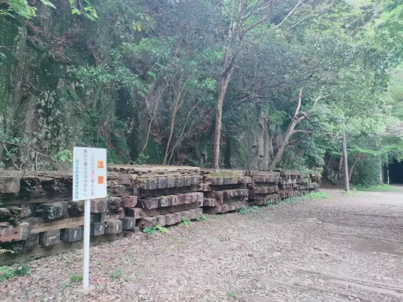 まくら木がたくさん積み重ねてあります。この先に見えるのは溝滝尾隧道で149mと短いのですが、すぐ次に現れる長尾山隧道とのあいだに掛かる【武庫川第2橋梁】が今日のメインの場所になります。