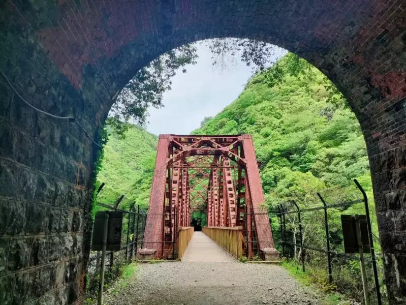 美しい武庫川渓谷沿いに南北に続く約4.7㎞のコース上には6つのトンネルや3つの橋などの鉄道遺構が当時とほとんど変わらない姿で残っています。桜や紅葉のシーズンはもちろん、鉄道マニアに限らず年中多くの人が訪れています。