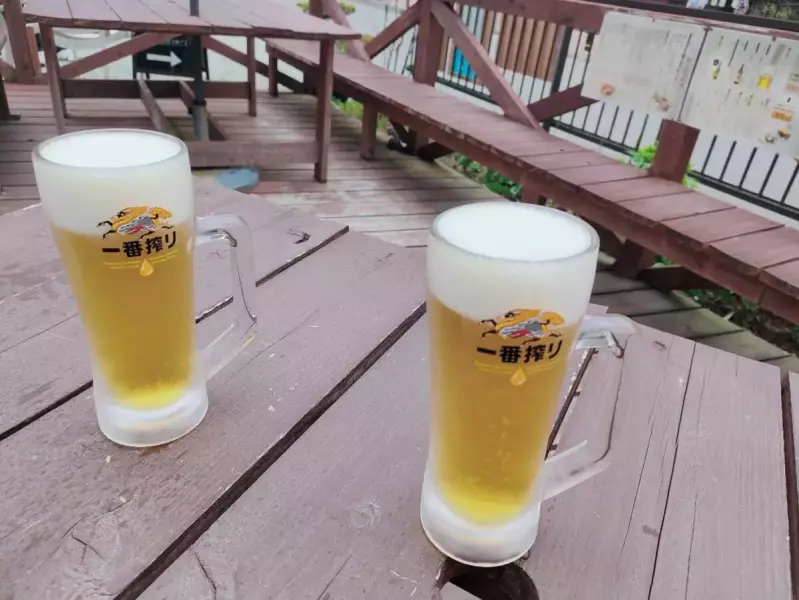 武田尾側の廃線入口には「はたくま」というオープンテラスのあるお店があり食事ができます。たくさんの方が休憩されていたので私たちもプチ打ち上げを早速しました。隣のテーブルの方が「幸せ~」と言いながら二杯目をおかわりされていました。気持ちわかりますよ~(笑)