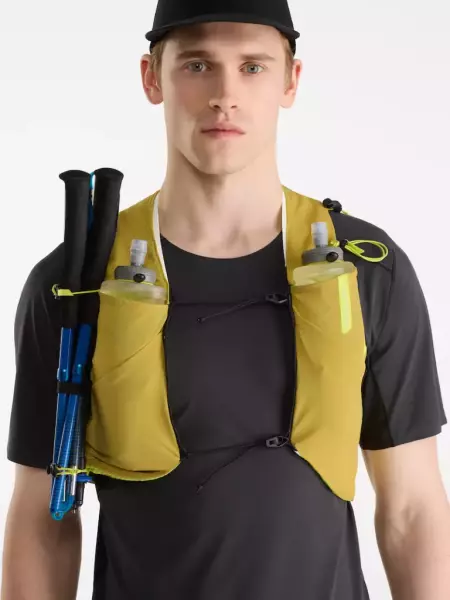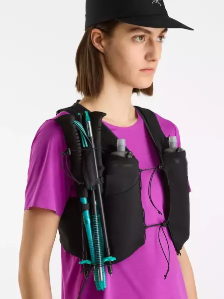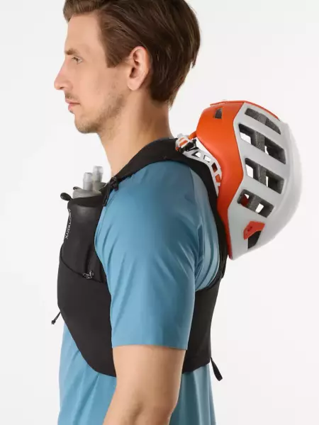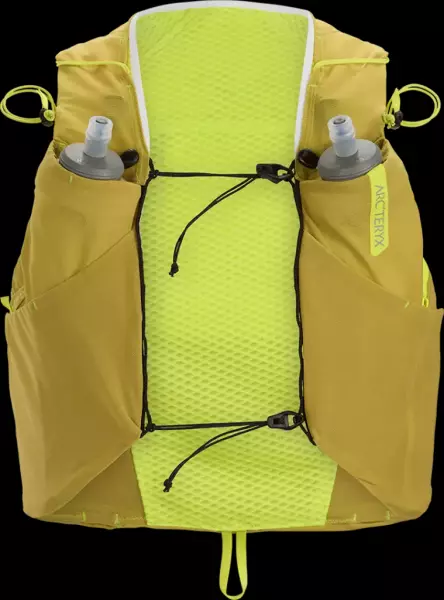 ランニングやピークバッグ、サミットパックとしても活躍するジェンダーニュートラルフィットで、様々な動きに対応する14Lベスト。ハイドレーション、ジャケット、アイスピッケル、トレッキングポールなどの大物も装着可能。ARC’TERYXロゴの付いた500mlフラスク2個付き。