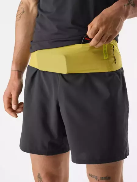 軽量でコンパクトながら山での必需品を携帯でき、ベストに組み合わせることにより容量を拡張することも可能。500mlフラスク、薄手のシェル、行動食、小物等の必需品を大量に携帯できるパックベルト。ARC’TERYXロゴの付いた500mlフラスク1個付き。
