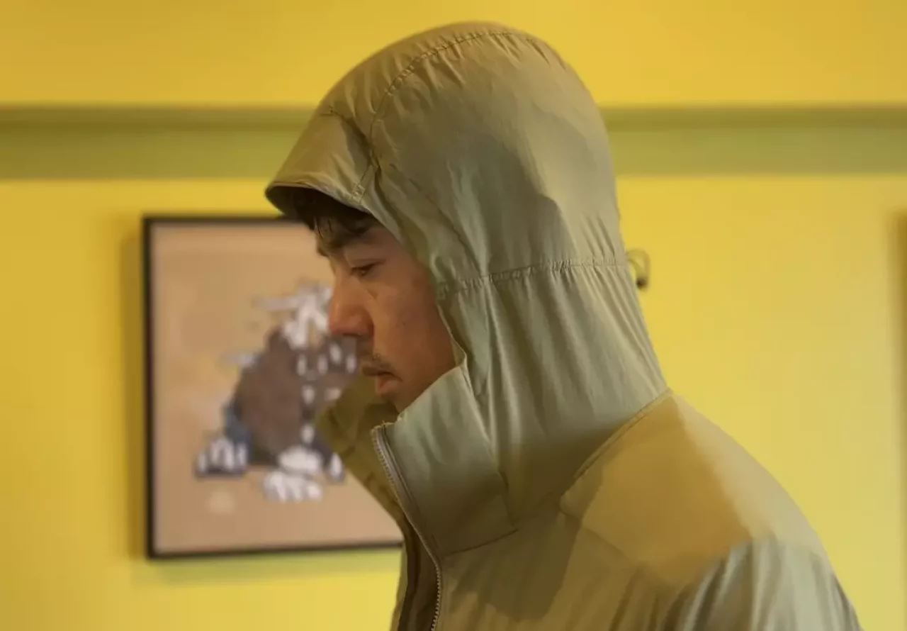 アトムLTフーディーは内側は起毛しており、外側はハードフリースのように耐久性を持たせた二重構造になっています。