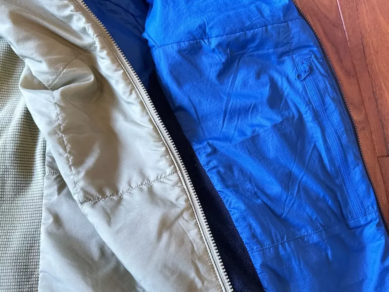 共通点は中綿と表地です。中綿はアークテリクスが開発したコアロフトと呼ばれる化選素材を使用しています。コアロフトの特徴は保温力が高いだけでなく優れた速乾性と通気性を兼ね備え行動中に着用していても蒸れづらいです。またロフト(嵩)の維持に優れていて、圧縮してパッキングしても着用時に復元してくれます。