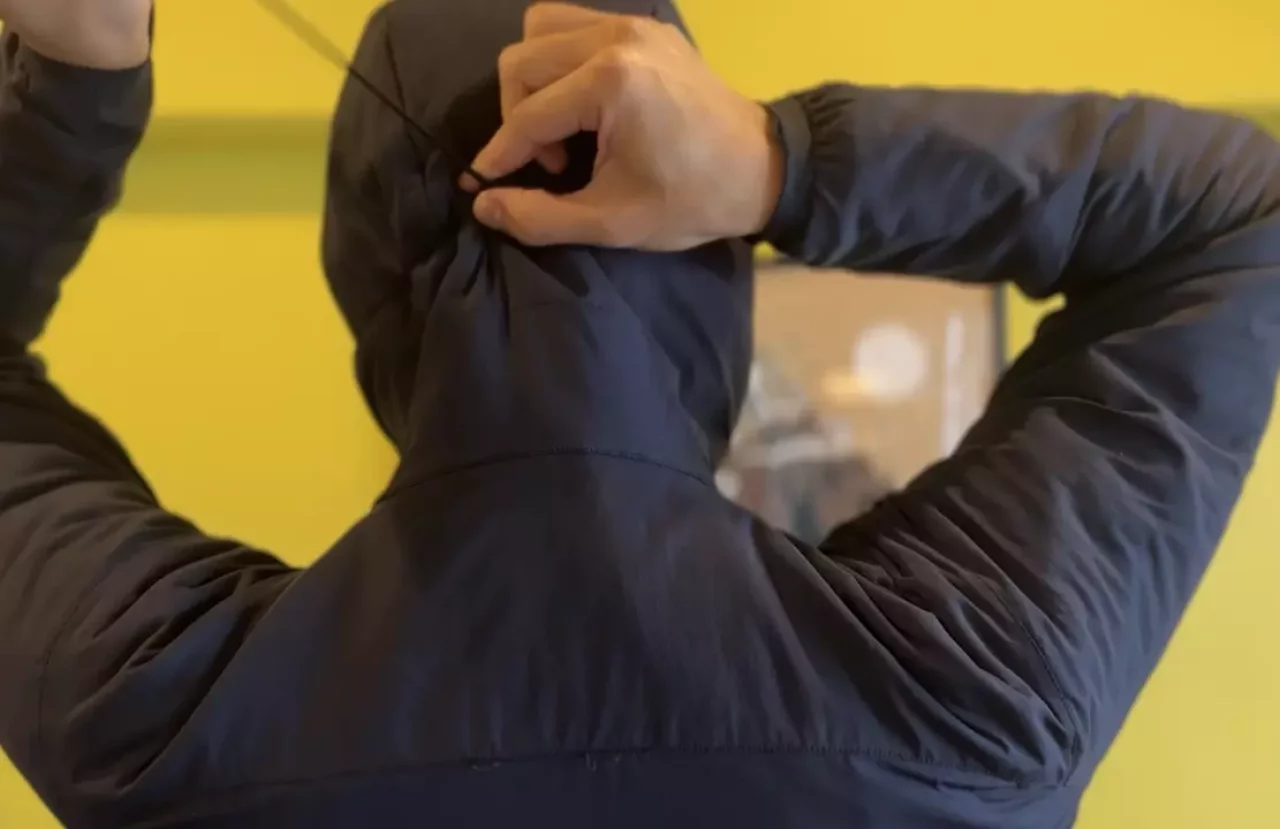 どちらのフードにもドローコードがついていて頭へのフィット感に優れています。