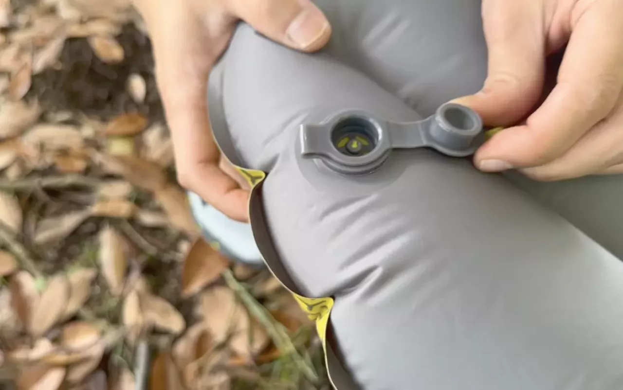 ドライバッグとしても使用できるポンプサック付きで、テントマットに空気を注入するのが容易なシステムです。空気が戻らないように逆止弁バルブが採用されていて、空気圧の調整が容易に行えます。