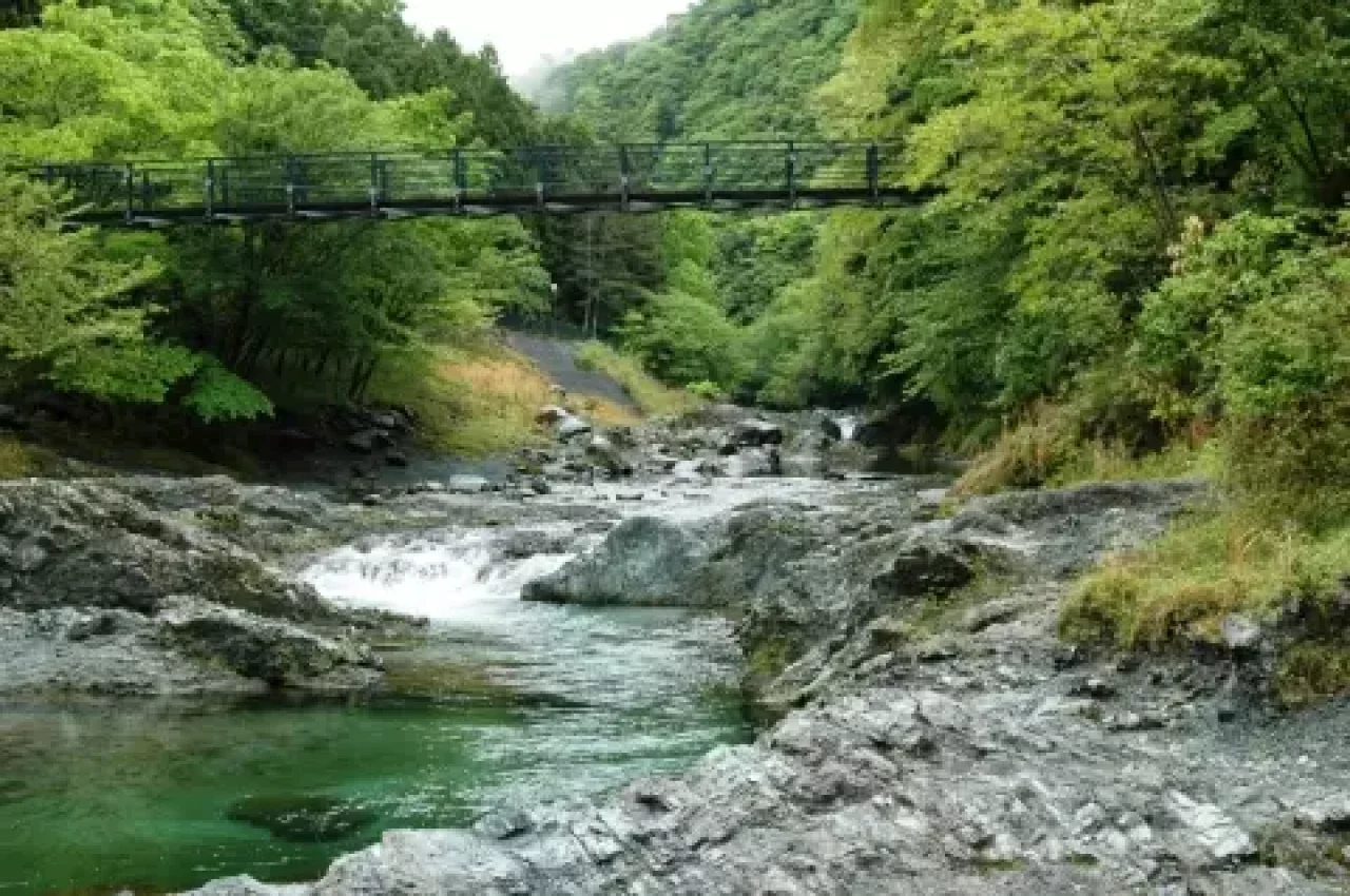 神奈川県山北町の町立日帰り温泉で、施設の前方には清流の美しい川と、川にかかる吊り橋があります。浴場は広く明るいガラス張りで、登山の疲労回復におすすめです。