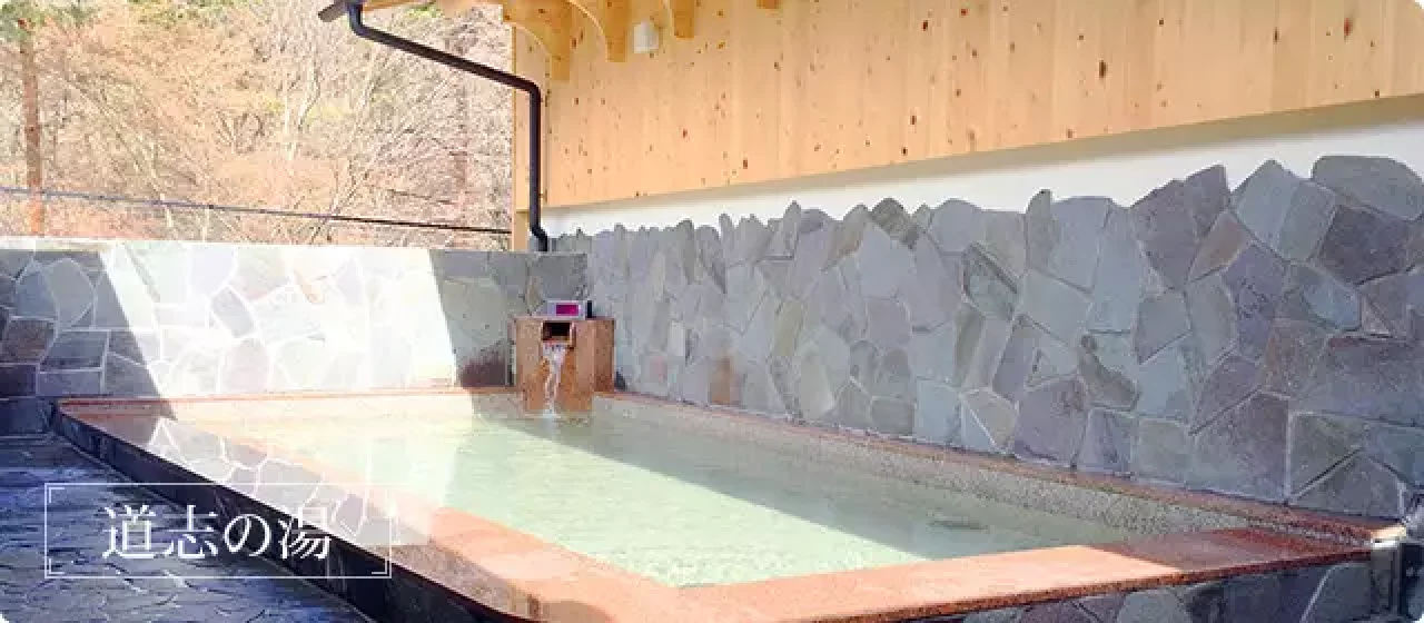 山梨県道志村側の登山口を利用するなら、日帰り温泉道志の湯は絶好の立ち寄りスポットです。硫酸塩泉の良質な温泉に、暖炉のある休憩室、お食事処、マッサージコーナー、売店があり、ゆったりくつろげます。