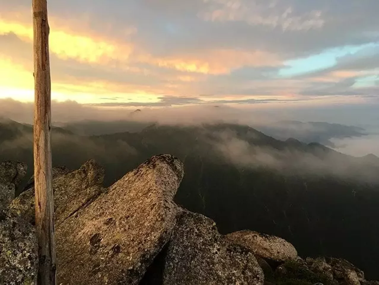 暗闇の中ヘッドライトの明かりを頼りに歩いていると、少しづつ夜が明けてくる。日が昇ると朝日が山肌や岩にあたり幻想的な景色を生み出してくれる。