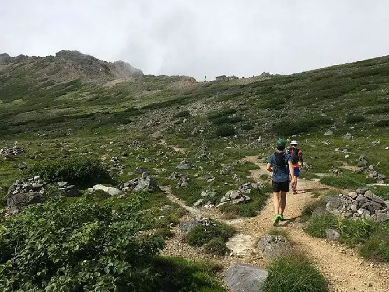 登りも下りも緩やかに続くトレイルは僕たち以外人はいない。こうしてサイノ河原を通るとなんとも不思議な気持ちになる。