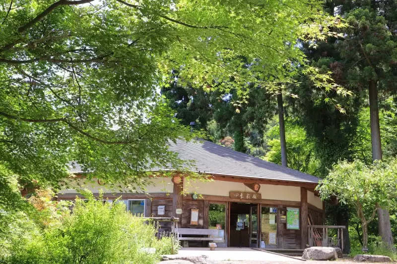 四季彩館は河内長野市が管理しているセンターハウスです。ハイキングコースや岩湧の森に詳しいスタッフが駐在し、生息する動物や昆虫、植物の図鑑と写真が展示されています。