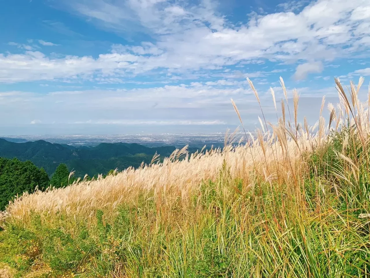 日本の山では珍しく山頂に大草原が広がっており、特に秋は「花ススキ」と呼ばれる穂のついた美しいススキが見られます。がんばって山頂まで登ったあとに広がる絶景は感動ものです。