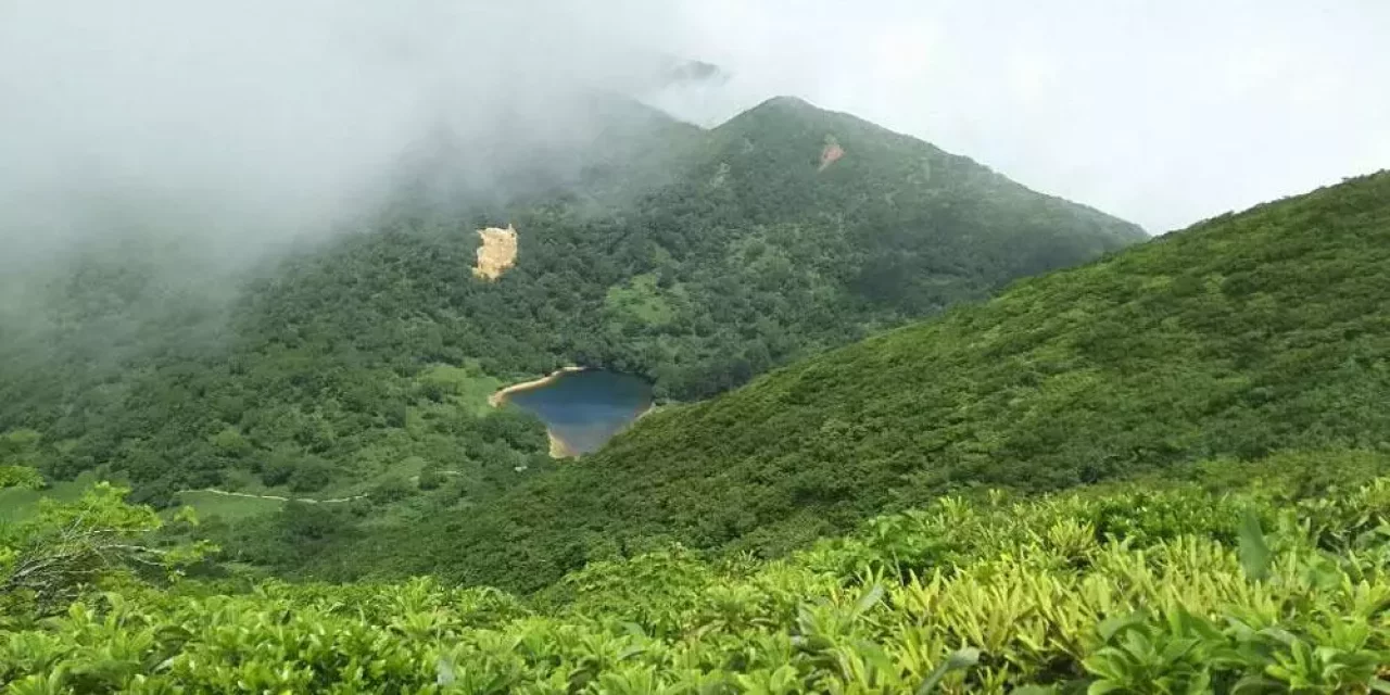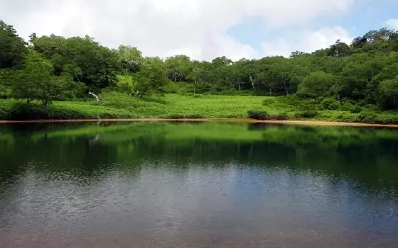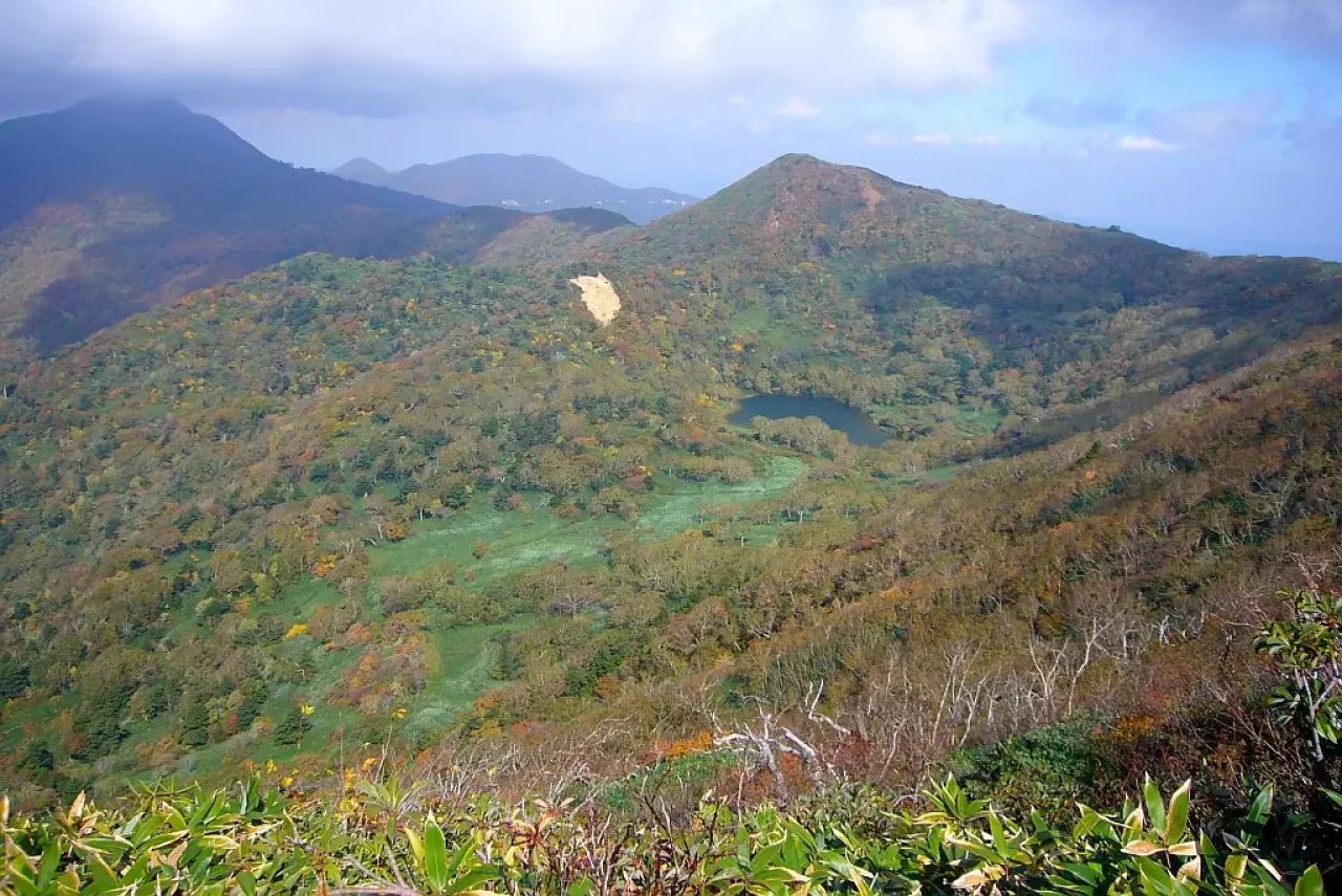 北に位置し神秘の沼とよばれる鏡ヶ沼は直径100mの爆裂火口で、その後水をたたえモリアオガエル・クロサンショウウオが生息する現在の姿になりました。