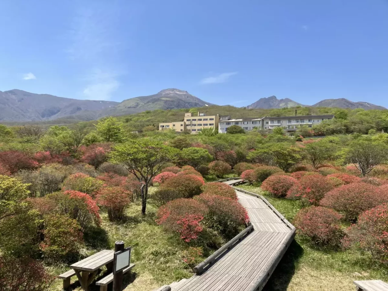 山頂駅を降りれば国内最大級約3万本のゴヨウツツジの群生が。ゴヨウツツジといえば敬宮愛子内親王のお印の花。純白の花のトンネル(5月中旬ごろ)が迎えてくれる、一周約45分のゴヨウツツジ遊歩道もあります。