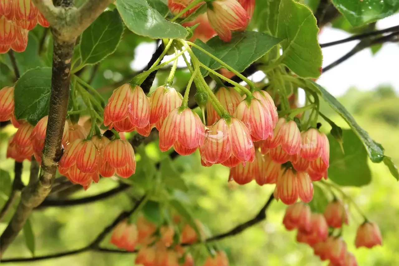 「天の泉」周辺には「サラサドウダン群落」があります。ツツジの仲間で別名「風鈴つつじ」と言い、日本固有種の落葉低木です。秋は紅葉が見事で、真っ赤な葉が山を彩るので、遠くからでも分かります。他にもヤマボウシやヤマユリなど、花のとても多い位山です。