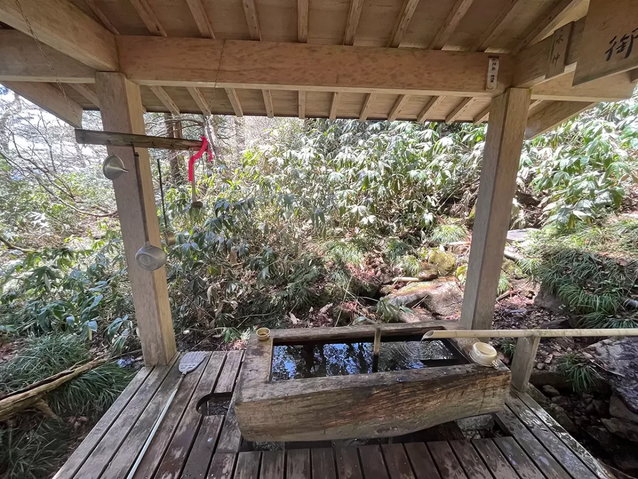 位山の山頂付近なのに、岩穴から神の水がこんこんと湧き出る。「天の泉」と呼ばれ、飲めば病気が治ると信じられている。位山は飛騨地方の南北を分ける地点で、水源も南への「飛騨川」と北への「宮川」の両方へ水を供給している分水嶺(ぶんすいれい)の山になっている。太古の時代も川の水主として位山は崇められていた。