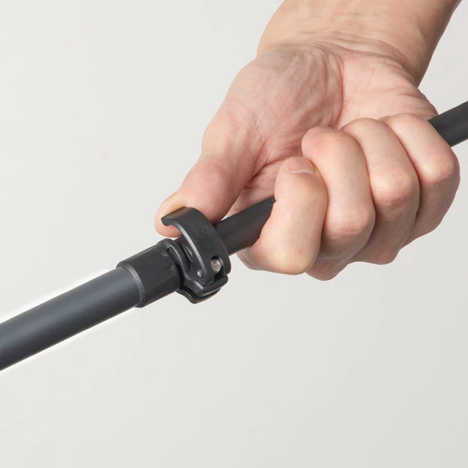 レバーロックは、シャフトの結合部についているレバーを開閉することで固定するタイプで、力をかけずに素早く固定ができ、ゆるむリスクも少ないです。従来は高価格帯の製品に採用されることが多かったですが、最近では比較的低価格のモデルでもレバーロックを採用しているものが増えてきました。