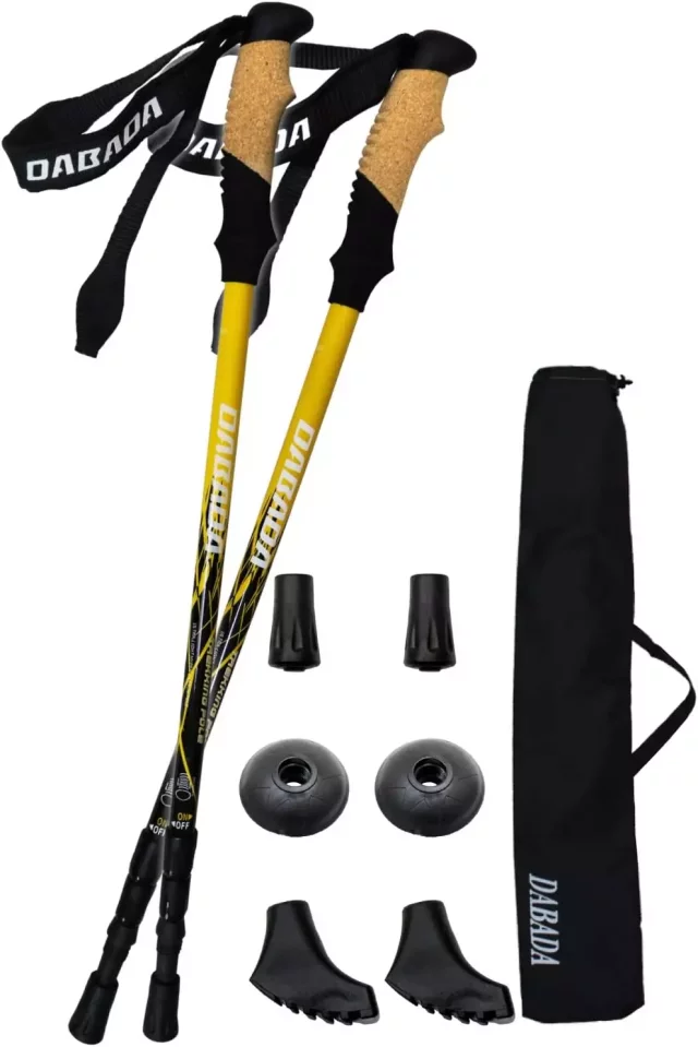 1つめはダバダ社のアルミ製のツイストロック式のポールです。1本あたり220gと軽量かつシンプルな構造で使いやすいため、初心者が最初に使用する一本としておすすめのポールです。地面にポールを突いた際の衝撃を緩和するアンチショック機能や、手になじみやすいコルク製のグリップなど、低価格ながら、随所に使いやすさへの配慮がなされています。