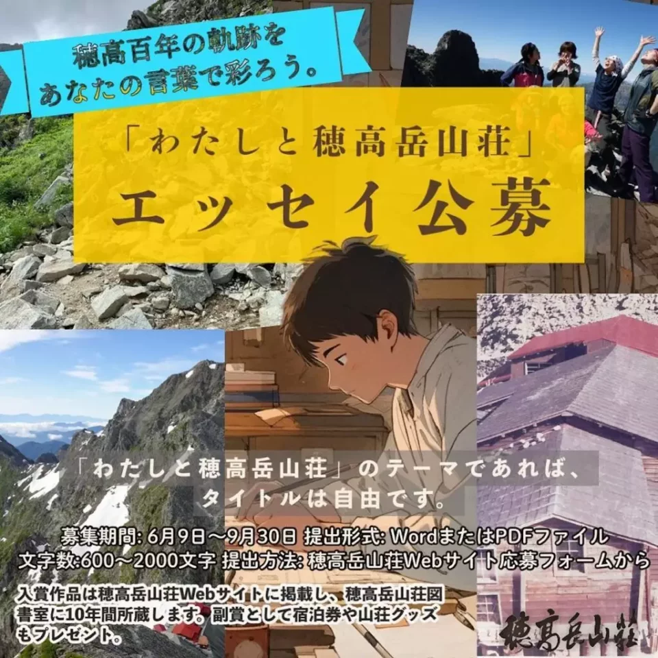 600文字から応募できるので、ぜひ穂高岳登山や山荘に滞在した思い出をつづって、応募してみよう。