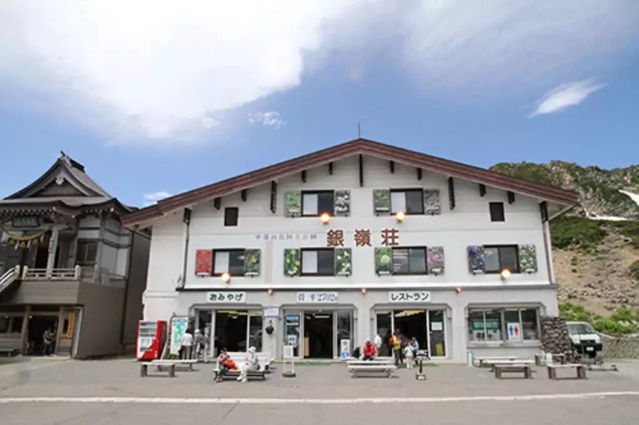 銀嶺荘(ぎんれいそう)は乗鞍登山ベースの標高2,702mの畳平にあり、1階はお土産売り場2階は食堂と客室となっています。トイレはありますが有料です。