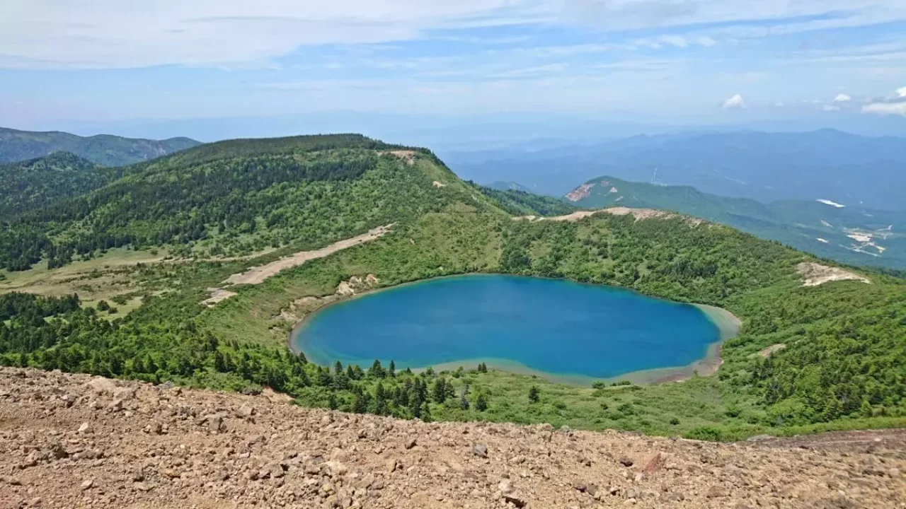そしてこの急登を登り切れば山頂です。吾妻連峰の山々を眺望しながらお目当ての「魔女の瞳」へ。思わず誘惑されてしまいそうなコバルトブルーの瞳に見つめられたらその絶景に心奪われることでしょう。