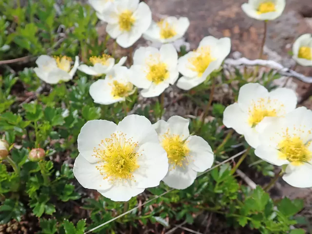 姥ケ原は酸ガ平湿原のほぼ対岸に位置しますが、チングルマやイワカガミが咲き乱れていて、鎌沼周辺は花好きにはたまらないエリア。