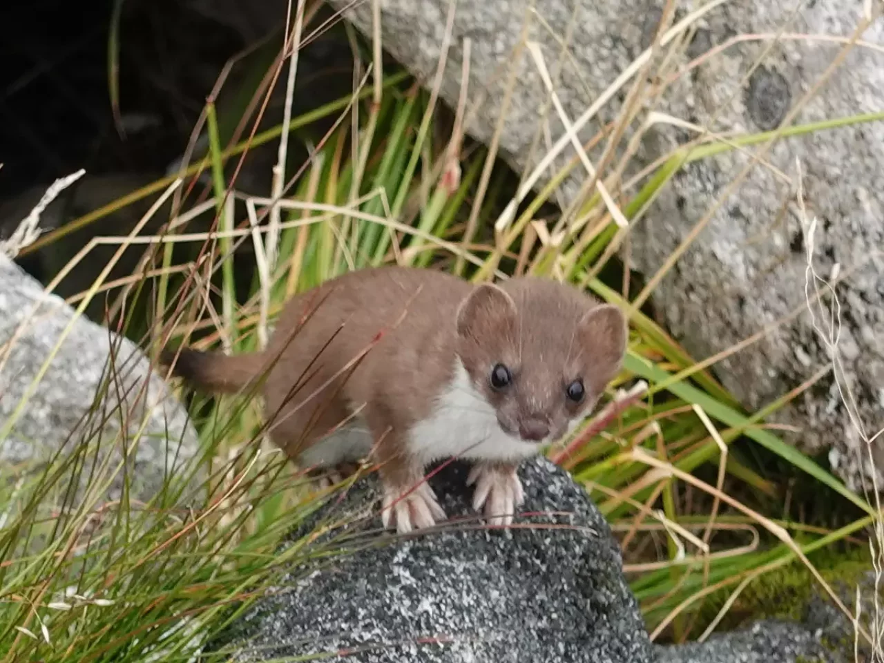 山頂には登山者を見に来る「オコジョ(イタチ)」がいるとか。「あなたは誰?」と、到着した登山者を偵察してる「オコジョ」に気づくかもしれません。
