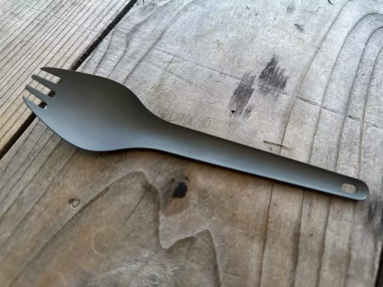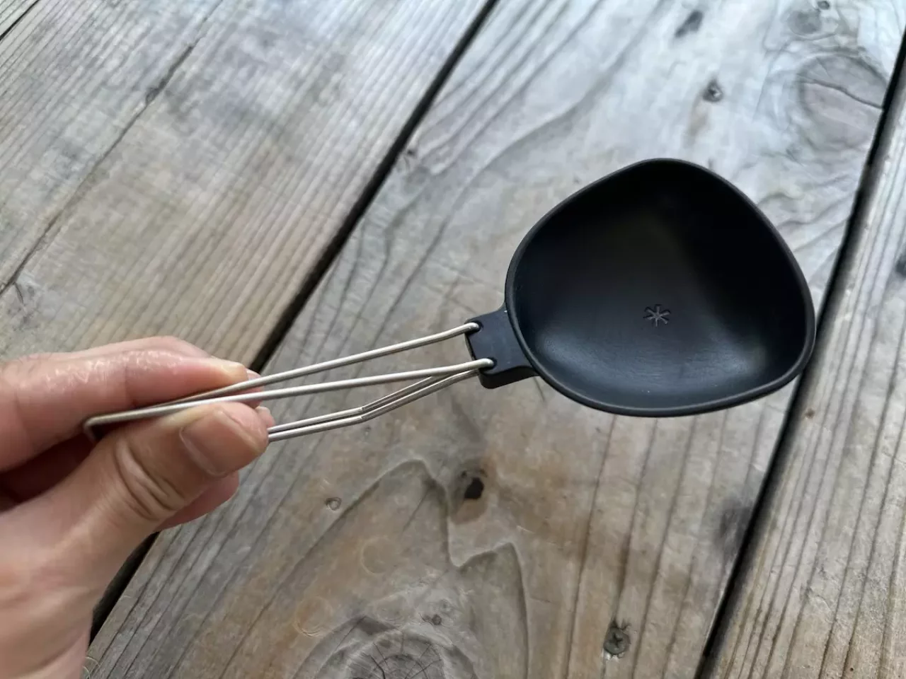 持ちやすい断面を備えているため滑りづらく、深いクッカーの底まで届く165mmという長さで食べやすく、しかも強度があり、アルマイトの外骨格を備えているため食材がくっつきづらく、新潟県燕市の工場で生産された本格的なデザインが採用されたカトラリーです。