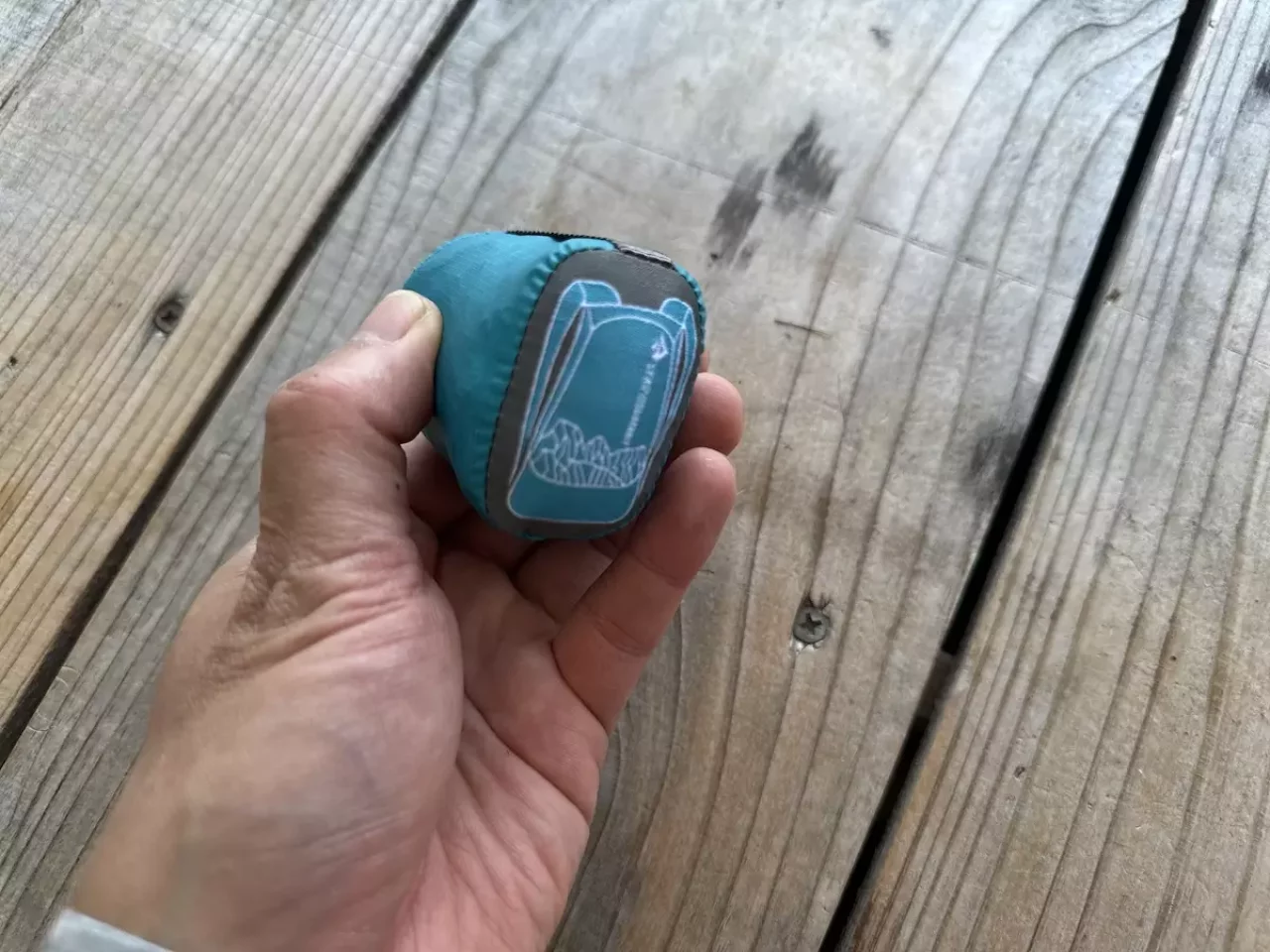 手のひらの中に収まってしまうほどコンパクトで軽いアタックザックにもってこい!のアイテムです。お風呂道具を入れて温泉に出かけたり、ちょっとした買い物バックにも使うことができる汎用性の高さも魅力で、ちょっとした雨でもシリコン含浸ナイロンファブリックを採用しているので、雨を弾いてくれます。