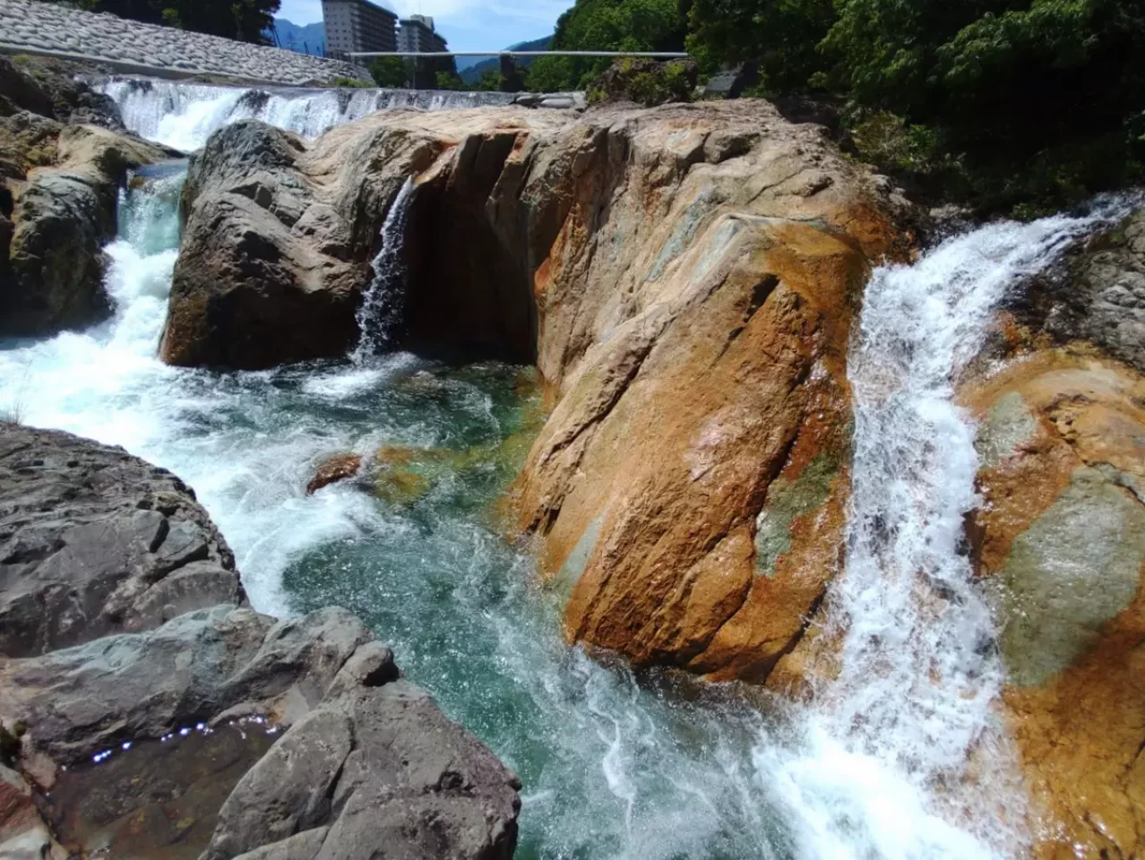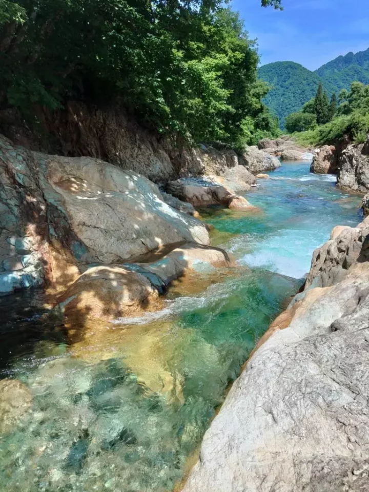 岩の湯より徒歩で5分ほどの場所には「鱒どまり」という川遊び、遊泳のできる場所があります。こんな美しい川を泳げるって貴重ではないでしょうか。夏の下山後の思い出作りにぜひ、飛び込んでみてください。