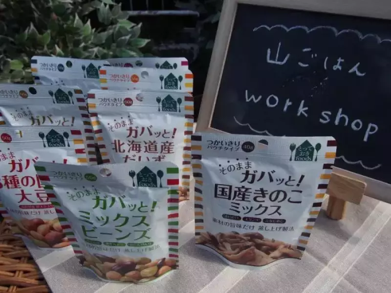 今回使用する食品はトーヨーフーズ株式会社から発売しているドライパック「そのままガバッと!」シリーズ。国産ひじき、ミックスビーンズ、北海道産だいず、スイートコーン、国産きのこミックス、3種の国産大豆、国産丹波種黒豆、北海道産金時豆の全8種類。これらを使って2品の山ごはんを作ります。