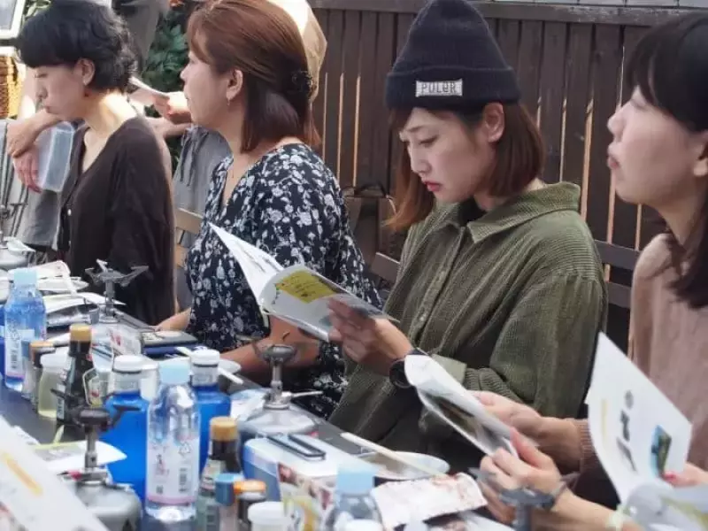 おしゃれなアウトドアパーティーを企画・提案している「KIPPIS(キッピス)」のみなさんから、バーナーの使い方や使用上の注意の説明を聞いた後、参加者と一緒に調理開始。シェラカップとクッカーを使用し、「山で食べる」という前提の下、和やかに進んでいきます。