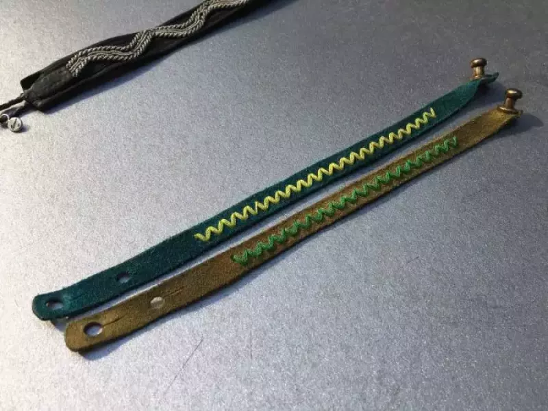 カラフルなレザーと山容に編みこまれたストラップはヌバックレザーで作られたもので、札幌にあるレザー専門店で買いました。マリアルドマンに比べてこちらはとってもリーズナブルで1,000円ちょっとだったような気がします。カラーバリエーションも沢山あって選ぶのが楽しかったです。この2つを連結して楽しむこともできるんです。
