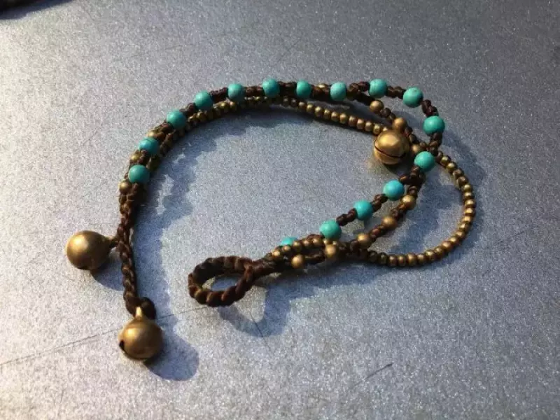 茶と金とターコイズカラーのブレスレットには鈴が付いています。これはニセコで買いました。音鳴ったら面白いかな?と思って買ったのを覚えてます。