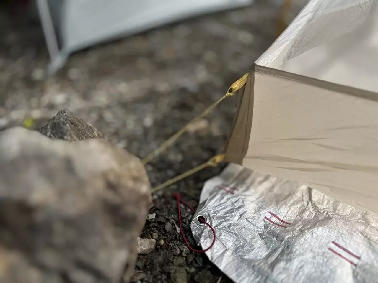 ガイラインは自在がついたリフレクティブで、ヘッドライトの明かりに反射するので足を引っ掛けづらい便利なタイプです。