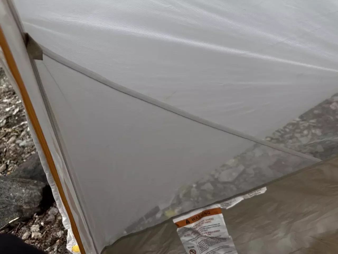 インナーテントの足側の角はガイラインを使ってテンションをかけることでバスタブが立ち上がるように作られています。最後にフライシートをインナーテントの上からかけて必要な箇所にペグダウンをして設営完了です。慣れればおおよそ5〜10分程度で設営を終わらすことができます。