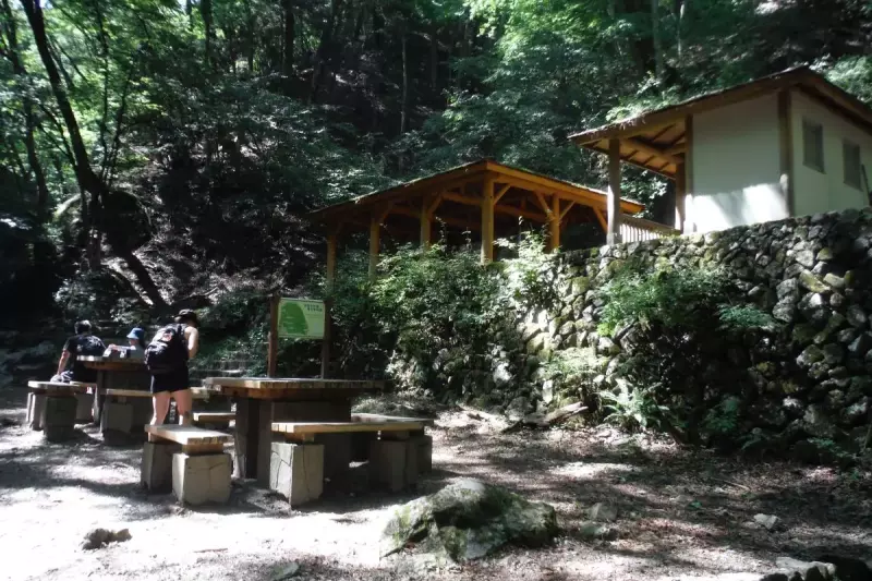 ゆっくりと風景やせせらぎを楽しめるため、ランチスポットにぴったりです。なお、トイレも併設されていますよ。