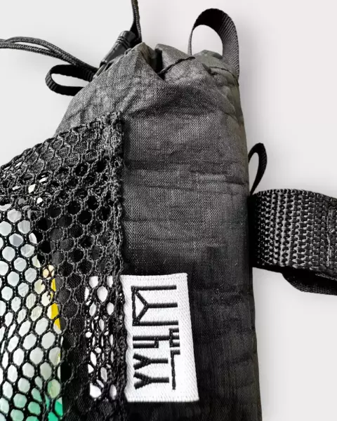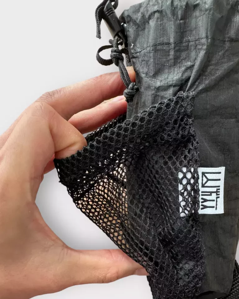 山旅のダイニーマショルダーポケットは、製品名にもあるようにダイニーマの中でも2.92ozと厚みのある耐久性に優れた素材を使用しています。このダイニーマはスチールよりも15倍強く、しなやかで柔らかく、水に浮くほど軽量な素材で、擦れても破れづらいアウトドア使用に適した、山旅では積極的に活用している素材の1つです。