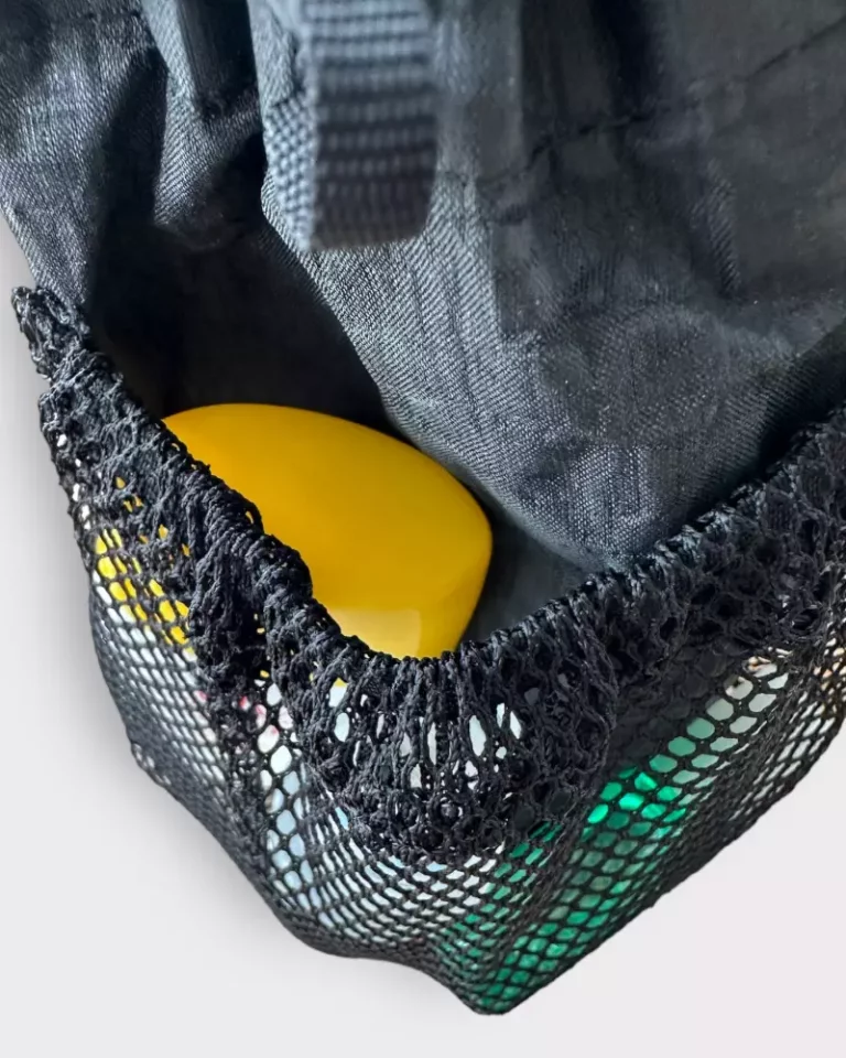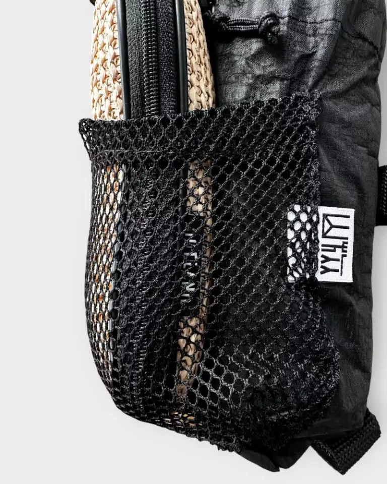 メインのポケットがパンパンになっても外側のメッシュポケットにはマチがついているので、収納力が劣らず、またものの出し入れがしやすいようにメッシュポケットの上部にはストレッチバンドを備えています。このストレッチバンドは中に入れたものの落下も防ぐようにデザインされています。