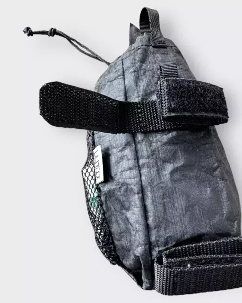ショルダーハーネスへの取り付け方法はベルクロテープで固定させます。バンド部分は様々なショルダーハーネスのサイズに取り付けることができるようにデザインされています。日帰り用のリュックから、縦走登山用の分厚いパッド付きのショルダーハーネスまで、様々なリュックに取り付けることができます。