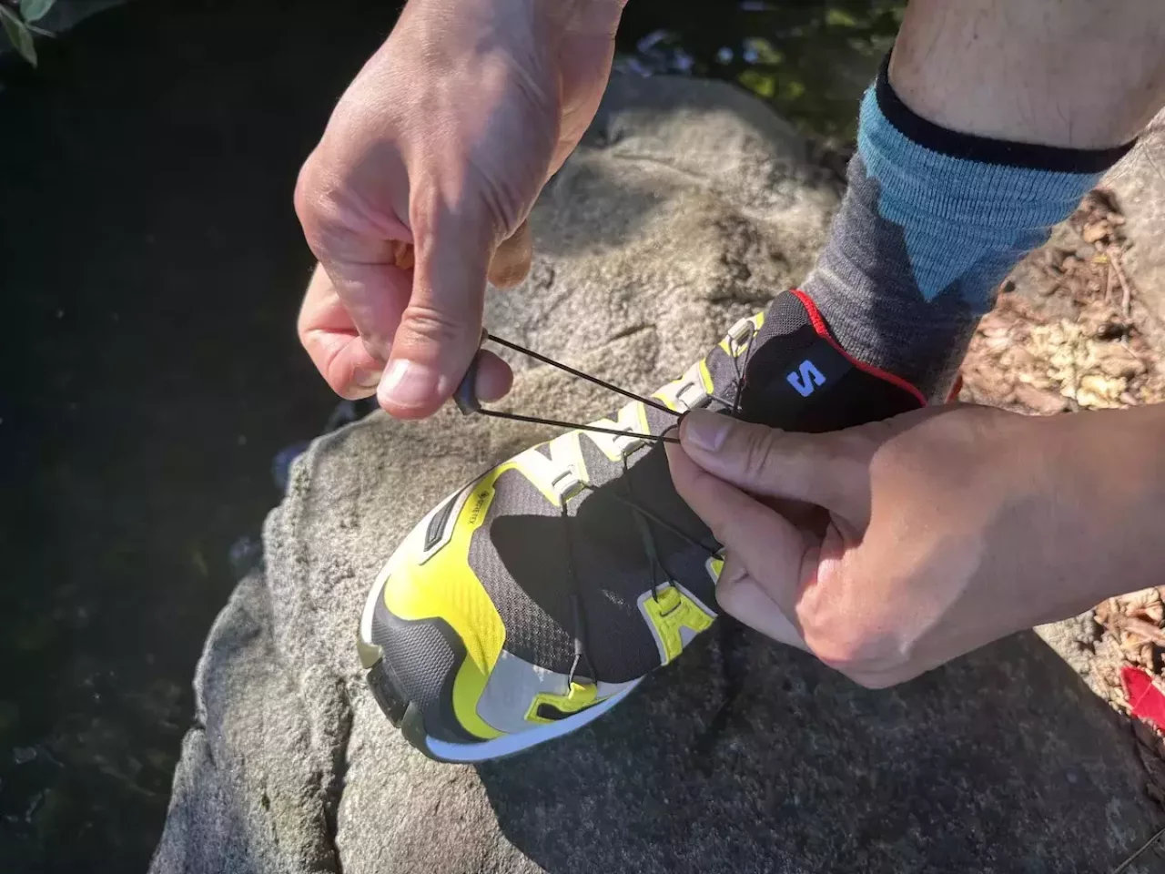 クイックレースとセンシフィットによる足全体を包み込むようなフィット感はサロモンのシューズの最も気に入っているポイントです。脱ぎ履きが楽チンで、シューレースが解ける心配がなく、長い距離を登山していると常に変化する足の形に素早くシューズをフィットさせるのに最高のシステムだと思っています。
