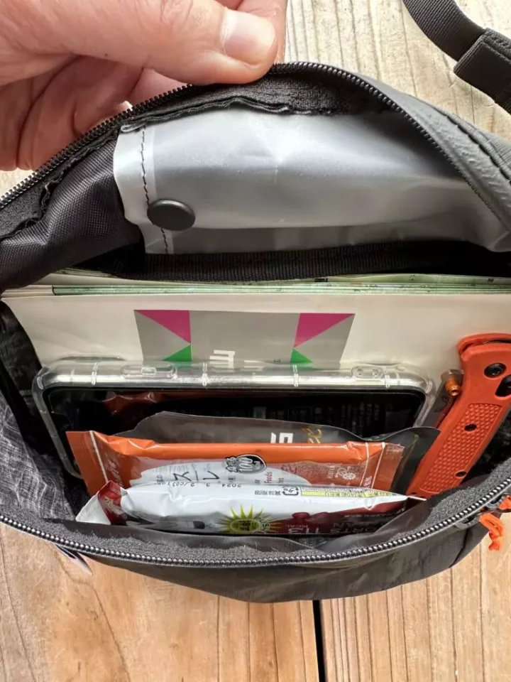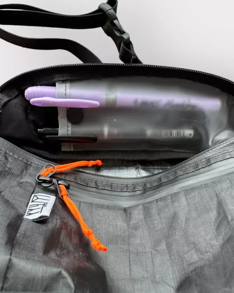 いづれのアイテムも山旅のもので、ダイニーマとX-PAC製なので水に濡れても保水して重くなるようなこともないし、サコッシュにおいては完全防水ではありませんが、止水ファスナーを備えているので中のものを濡らしづらく、小雨程度であれば濡れては困るものを収納しておいても安心です。