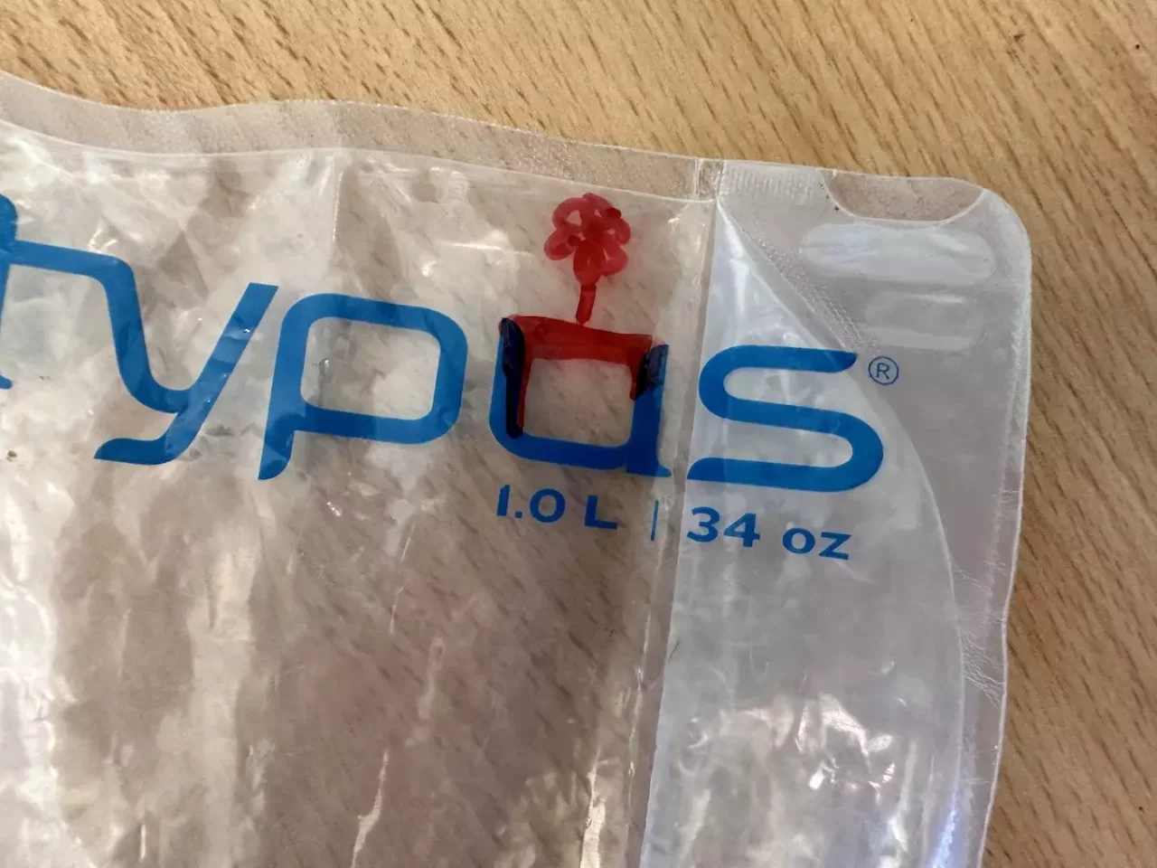 プラティパスを使っている人はたくさんいるので水場に置き忘れると、自分のものであることが分からなくなっちゃうので、落書きをして自分のものであることがわかるようにしています。