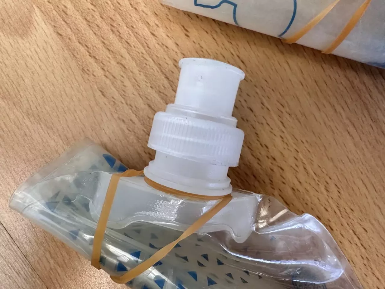 プラティパスの栓に輪ゴムを取り付けると、グラティパスを使わない時に折りたたんで固定しておくことができるので便利です。